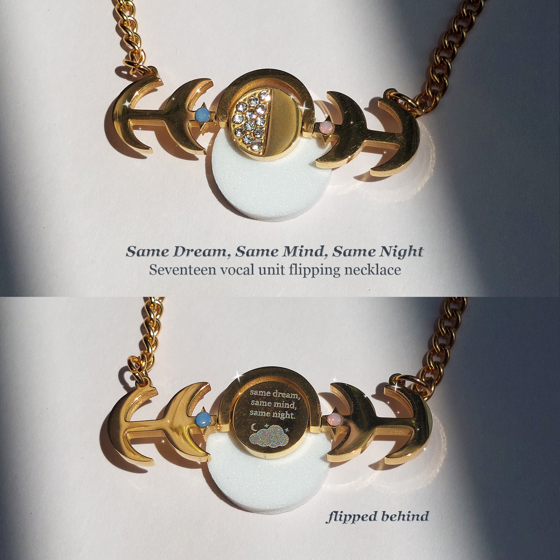 1) Same Dream, Same Mind, Same Night flipping necklace